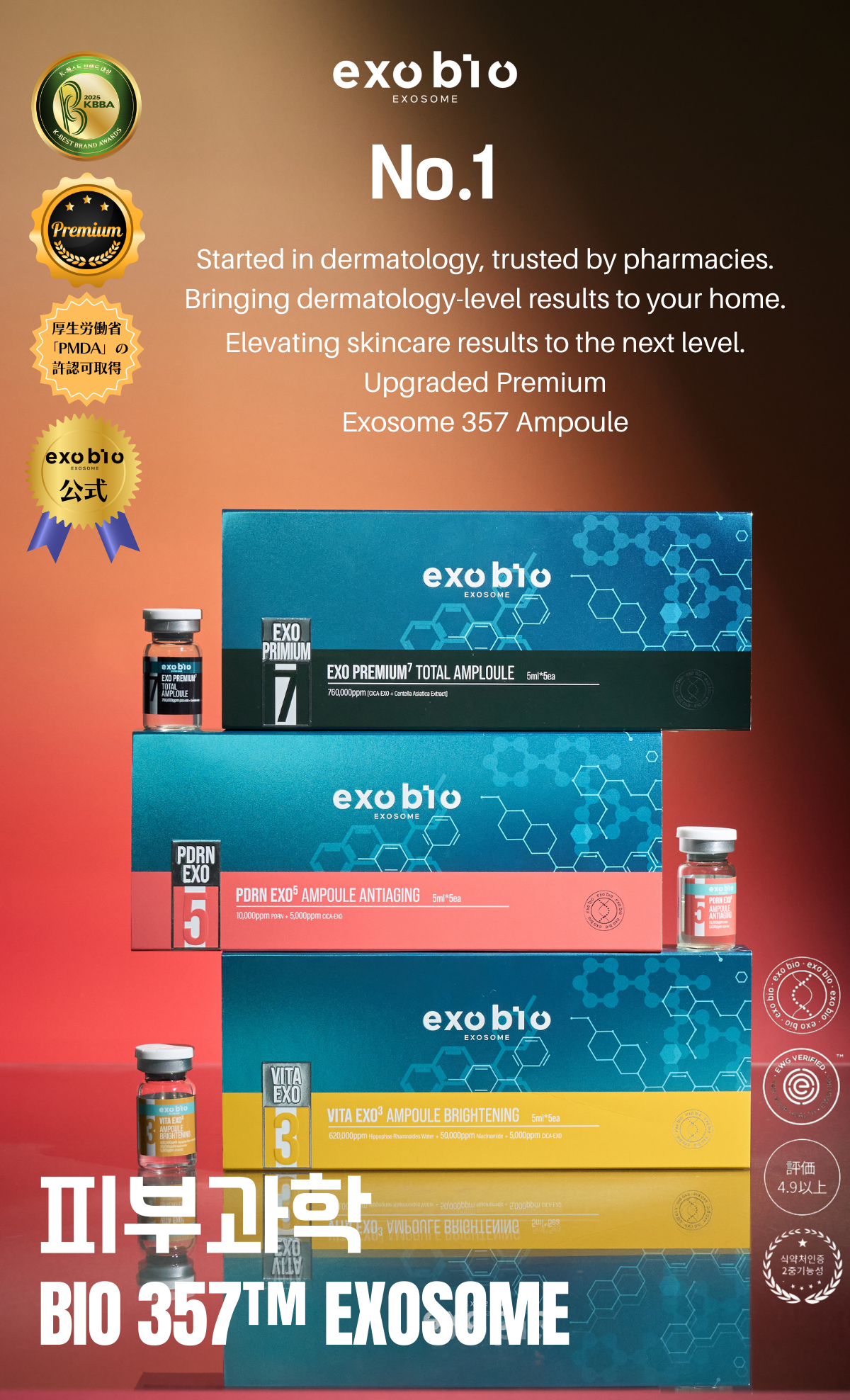EXOBIO 357™ EXOSOME Vita Exo Brightening Ampoule 5ml*5ea+RED Cica Exo Soothing Moisture Ampoule 15ML*2EA